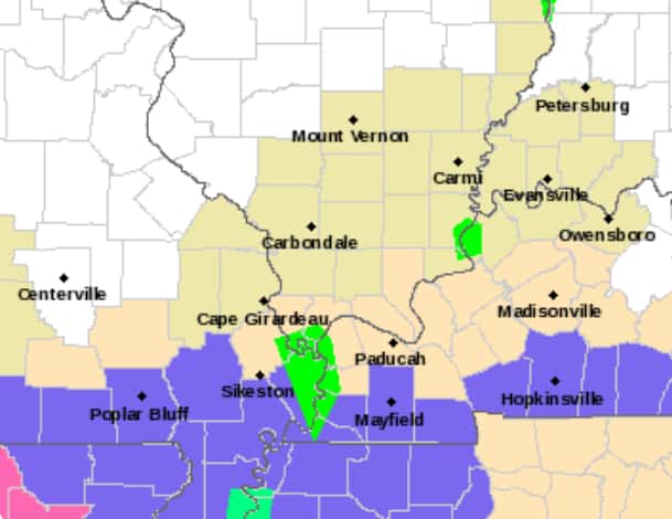 Paducah National Weather Service meteorologists say a mix of snow, sleet, and freezing rain is expected across Calloway, Christian, Todd and Trigg counties. They add snow accumulations of up to one inch are expected, with ice accumulations less than one-tenth inch possible.