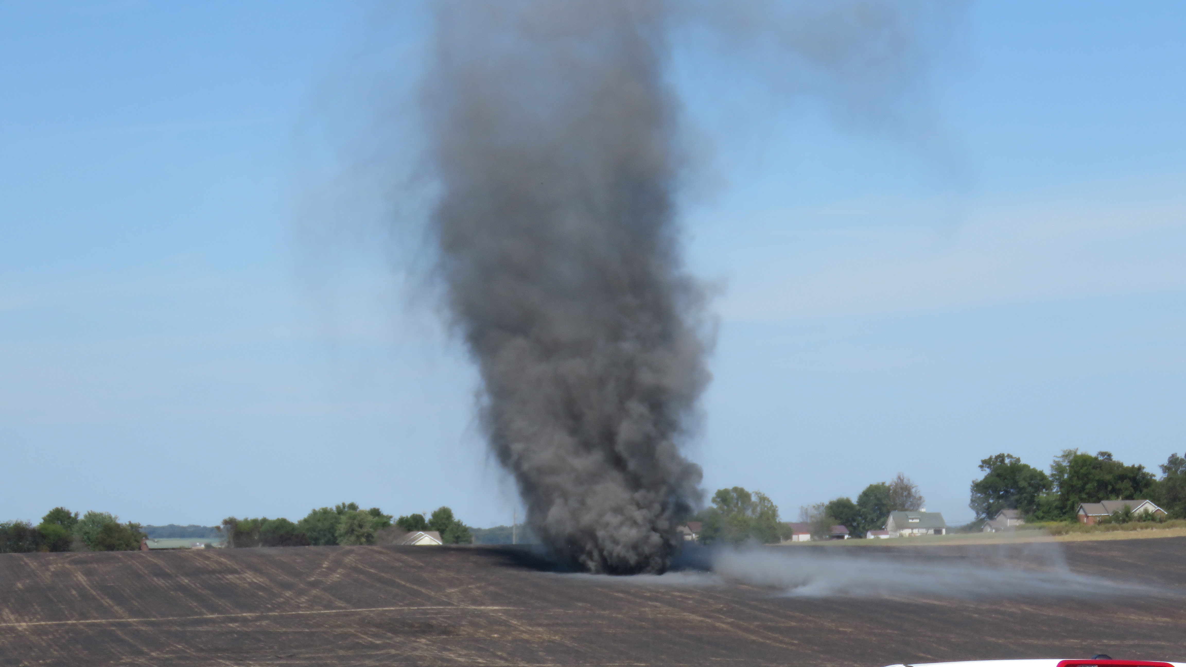 Oak Grove Fire Department Deputy Chief Bill Laux said over 100 acres of already harvested cornfield burned threatening homes on Polk Avenue, Good Hope Cemetery Road and Pembroke Oak Grove Road.