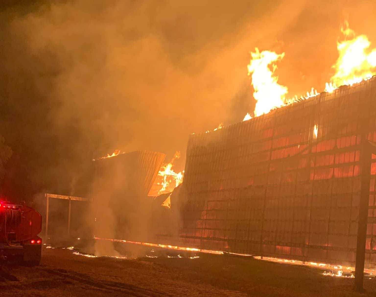 The Montgomery, Cerulean and other Volunteer Fire Departments responded to the blaze around midnight at RB Farms tobacco barns located just east of Cadiz off US 68. The barn and the tobacco crop inside were completely destroyed by the fire. Firefighters were able to keep the blaze from spreading to other nearby barns.