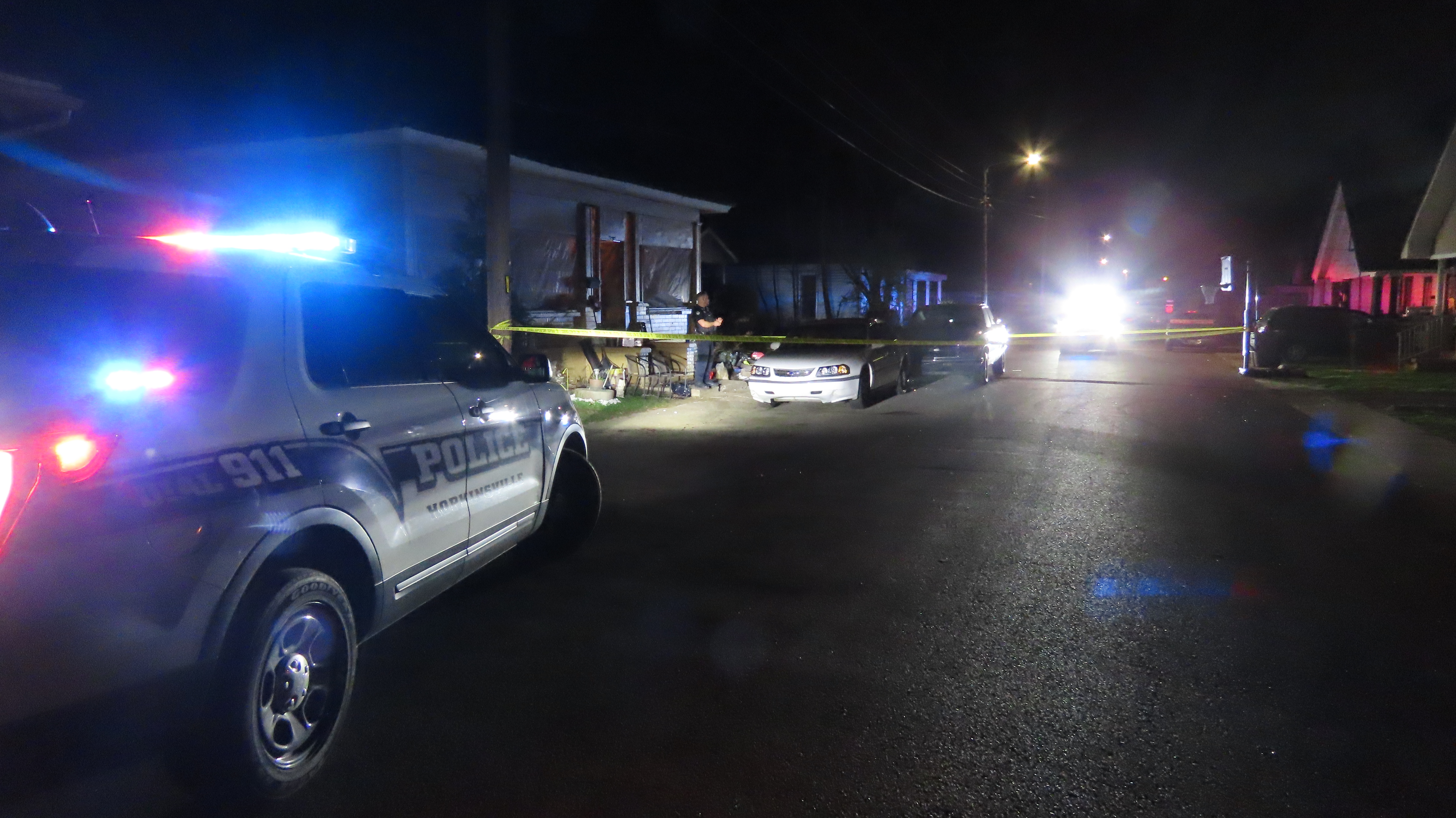 Police blocked off the home and the road in front of the home with crime scene tape and emergency vehicles as they worked to collect evidence.