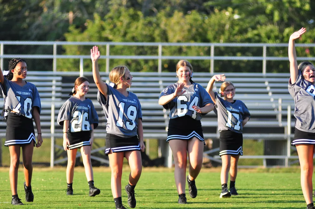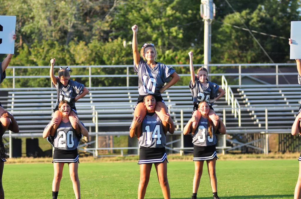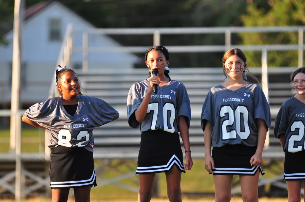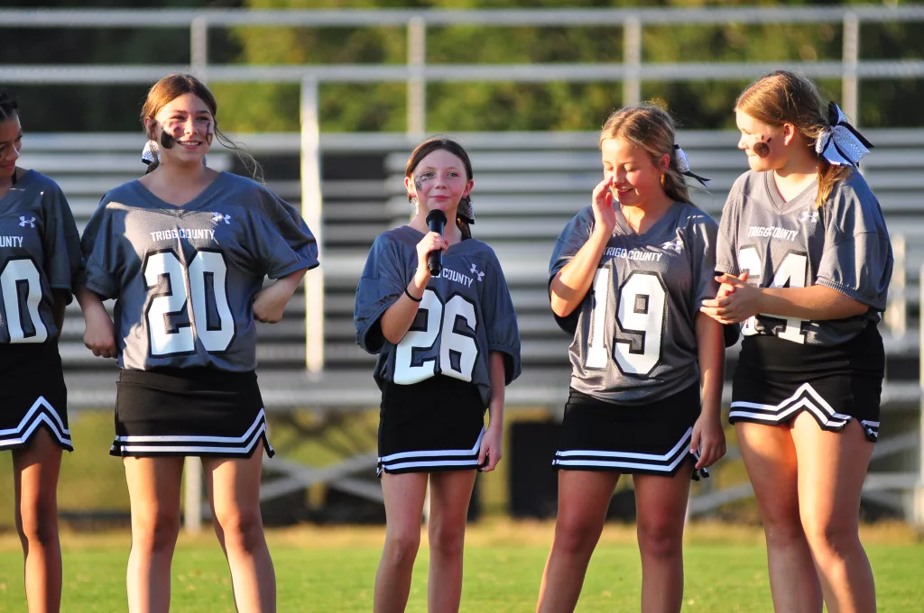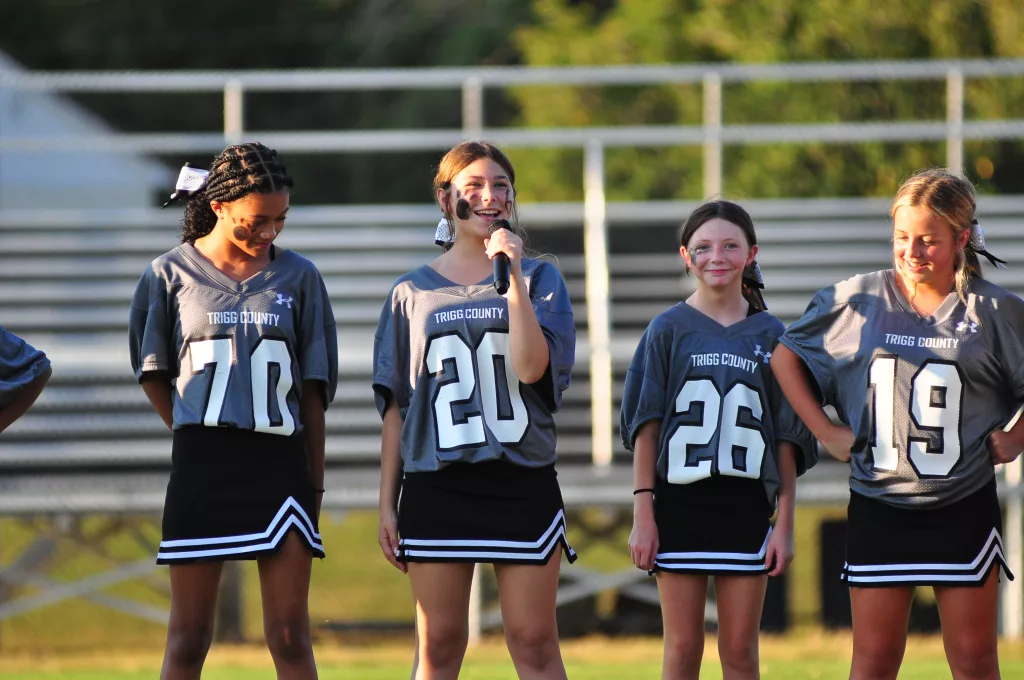 The Trigg County Middle School cheerleaders were introduced and then performed at Friday’s Meet the Wildcats at Perdue Field. Here is a gallery of them in action.