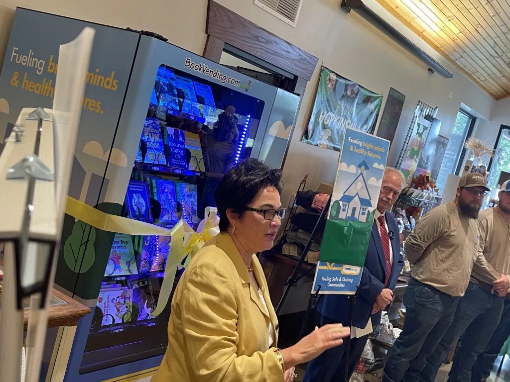 click to download audioHopkinsville Mayor JR Knight thanked Atmos Energy for their sponsorship of the book vending machine.