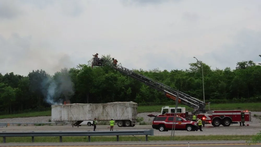Christian County emergency personnel say the tractor-trailer was hauling trash when it caught fire at the Lovers Lane exit.