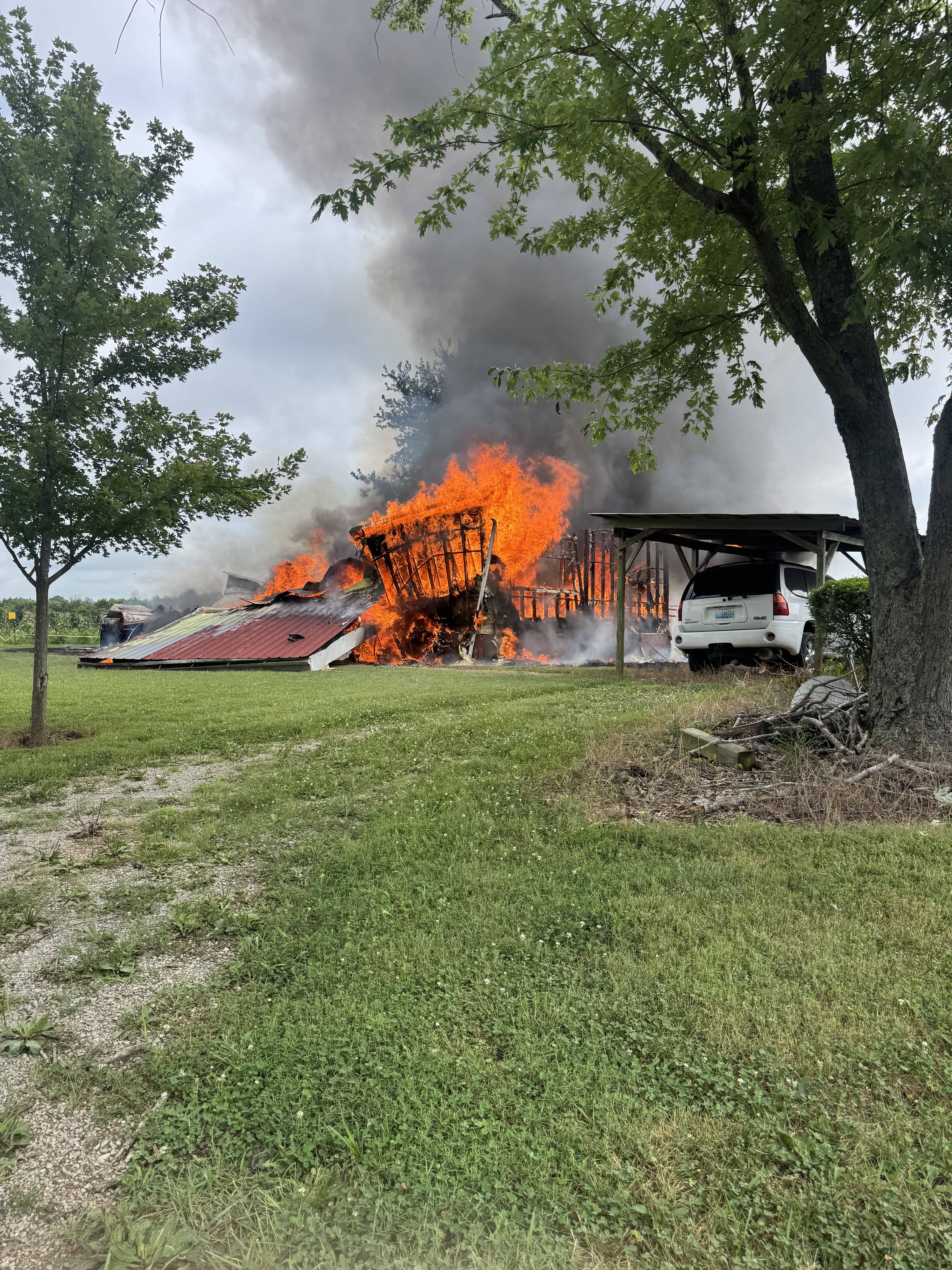 Lyon County and Kuttawa Volunteer Fire Departments responded to the call around 10:15 AM to the blaze in the 400 block of Seldon Mitchell Road.