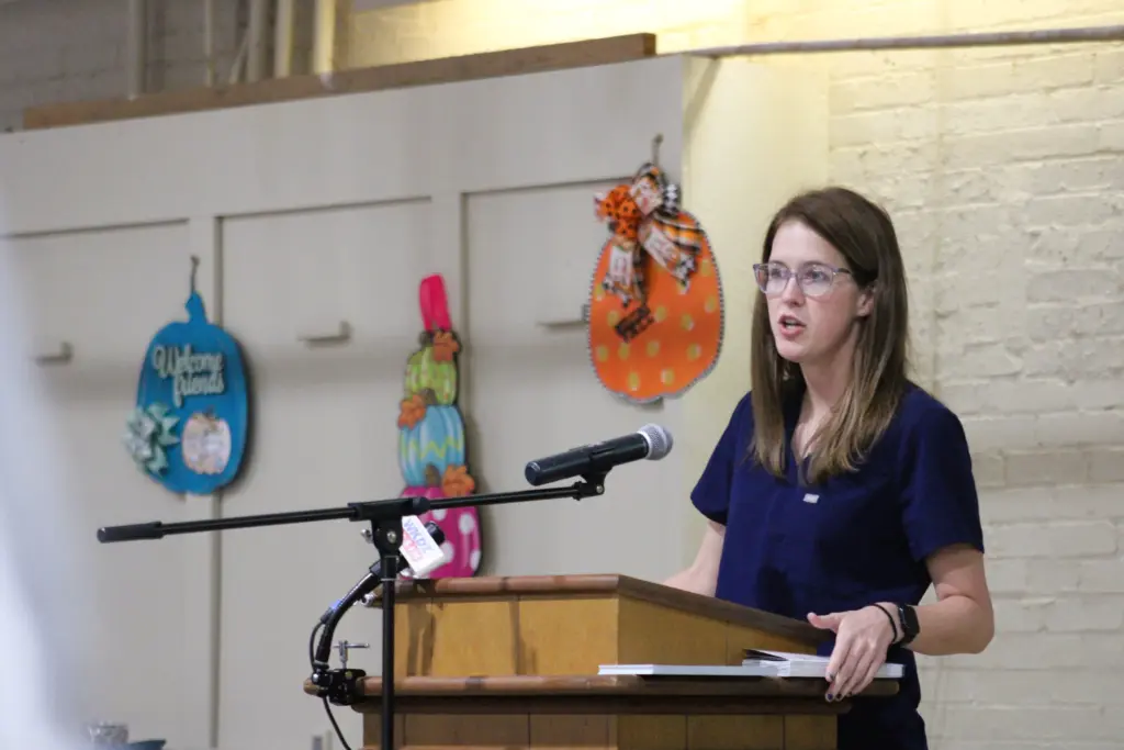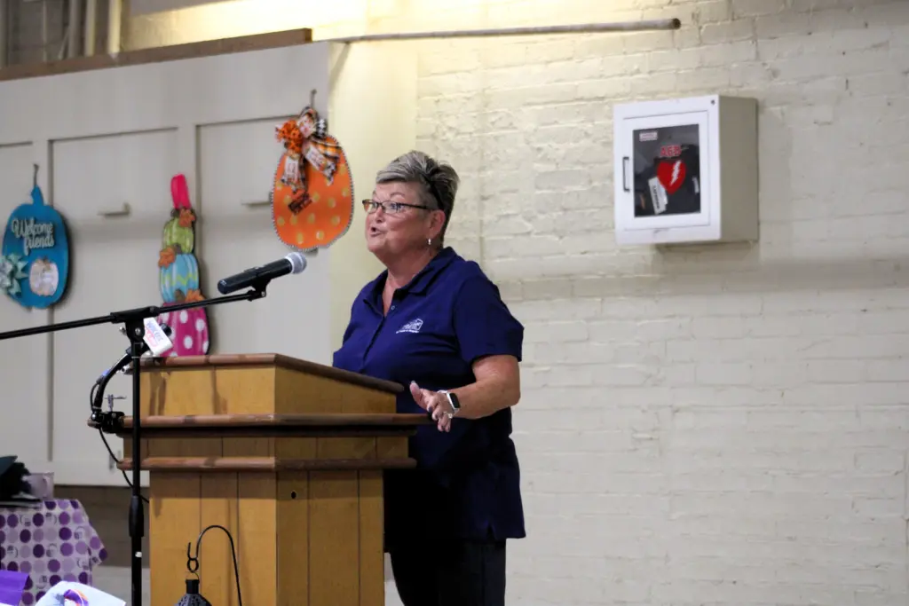 Dermatology Nurse Practitioner Jamie Slagel spoke about the dangers of skin cancer during the 27th annual Trigg County Relay Survivors Dinner Tuesday night.