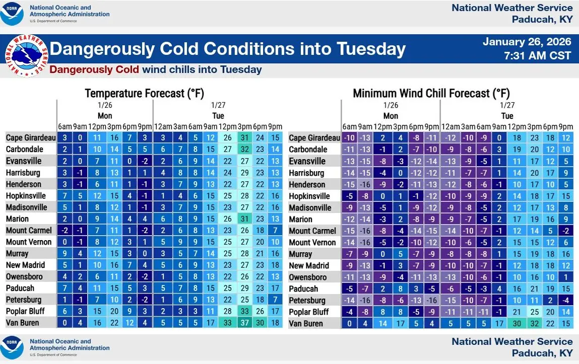 Overnight lows this week will remain in the single digits, slowing the thaw of streets and roads with an Extreme Cold Warning in effect until 10:00 Tuesday morning.