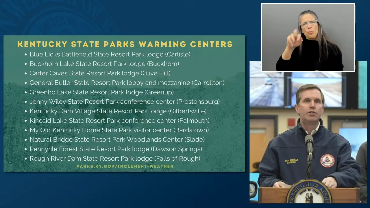 Furthermore, nearly 1,000 Kentuckians remain housed in 130-plus warming centers. Kentucky Dam Village in Gilbertsville and Pennyrile Forest State Park in Dawson Springs have joined the list of state parks offering local and regional assistance at this time.