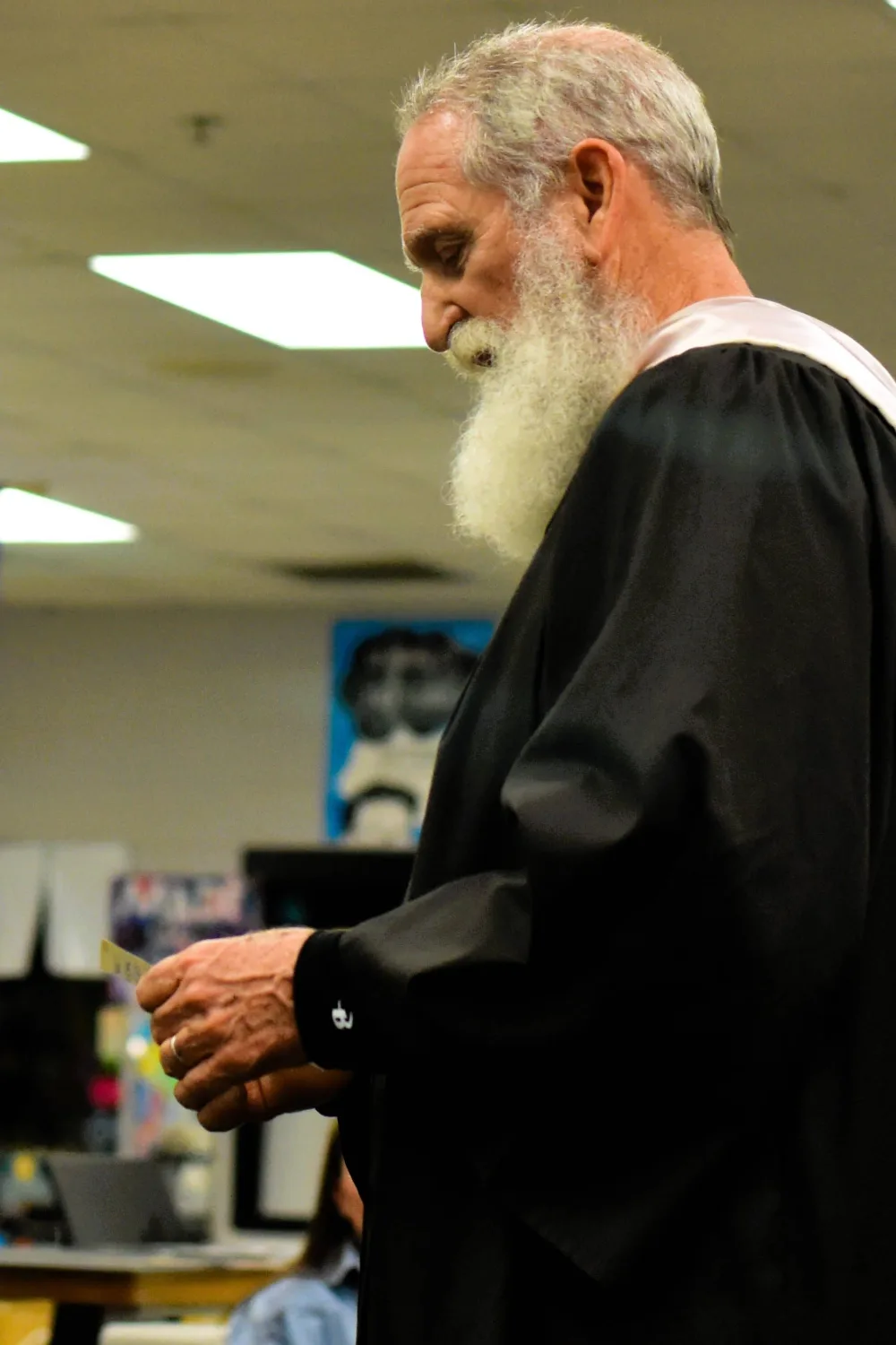 Mann, who wore a full white cap and gown, had several family members in attendance.