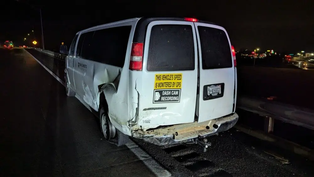 Kentucky State Police say at 7 pm, an eastbound car collided with the back side of a van next to it on the overpass for Fort Campbell Boulevard.