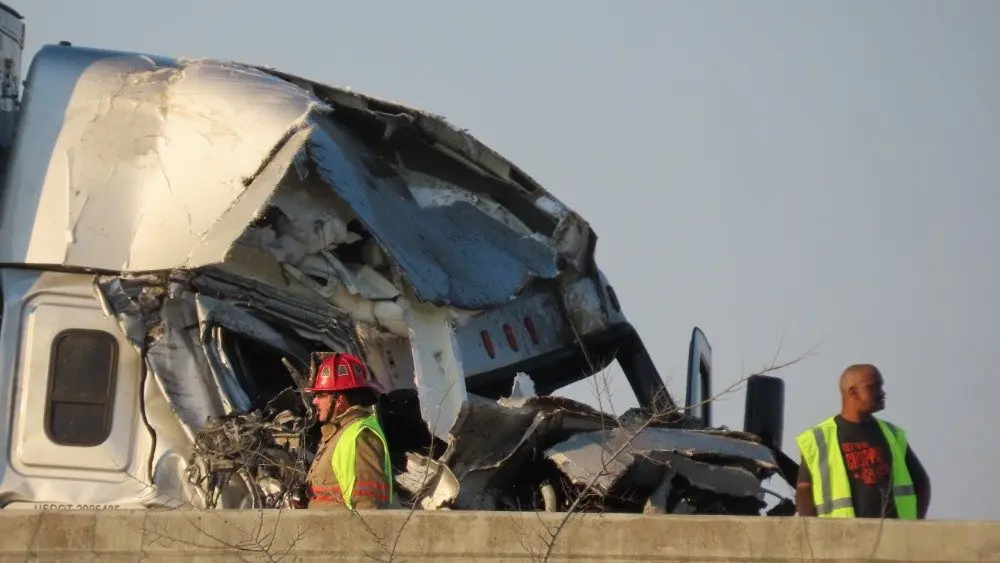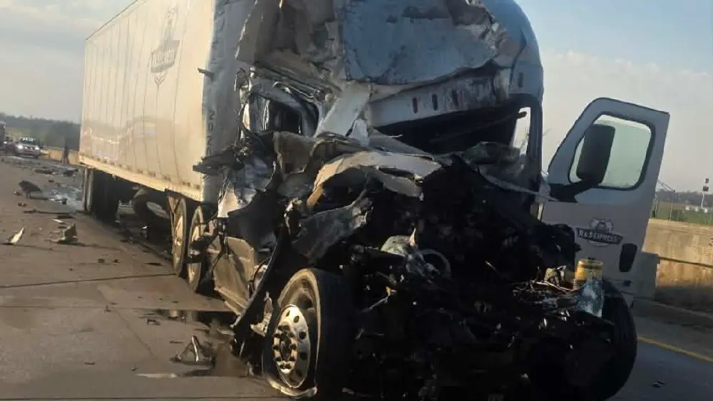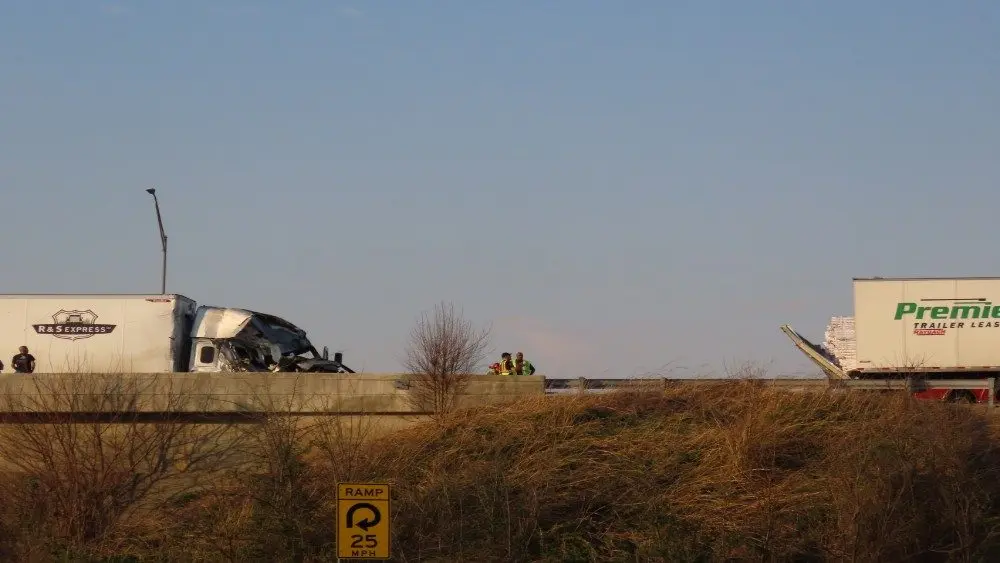 Christian County emergency personnel say a crash involving two tractor-trailers and a truck pulling a trailer led to the eastbound lanes being blocked at the Fort Campbell Boulevard overpass.