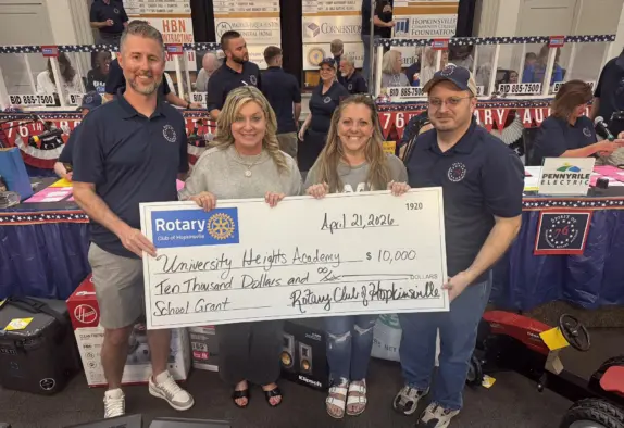 In addition to fundraising, the Hopkinsville Rotary Foundation presented two grants during the evening. University Heights Academy received funding to purchase a wireless microphone system to support its music and theater programs, while Heritage Christian Academy was awarded a grant for a mobile Chromebook lab to expand classroom technology access.