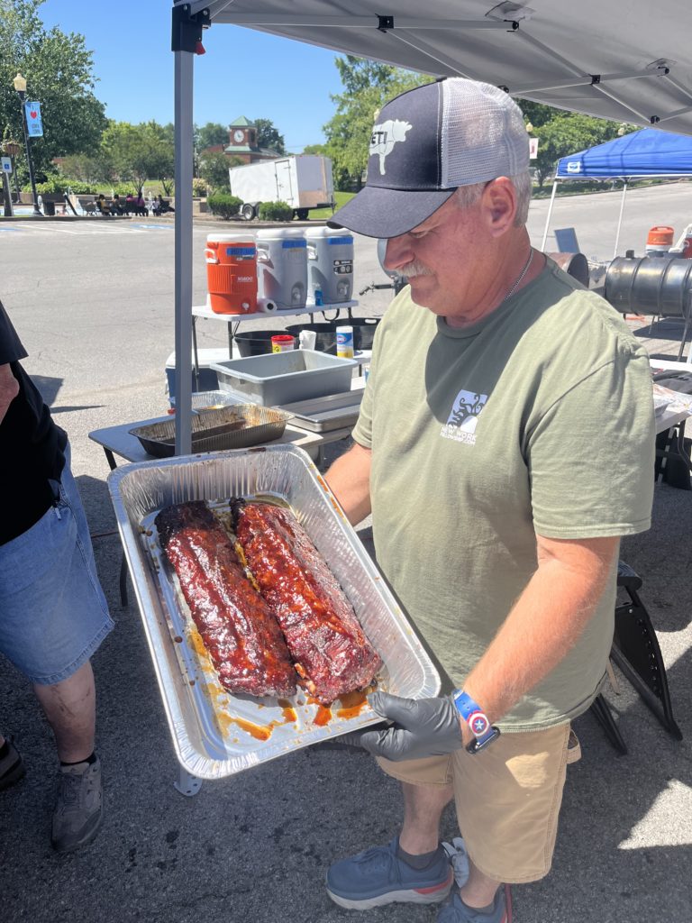 Bill Booth enjoying some BBQ ribs